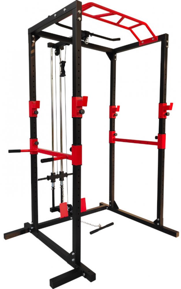 Klec nabízí dostatečně široký prostor pro pohodlné provádění různorodých cvičení a zároveň ji činí ideální pro umístění v domácím tréninkovém prostoru. Bezpečnostní tyče po stranách zajišťují maximální jistotu a bezpečnost při náročných cvičeních.
