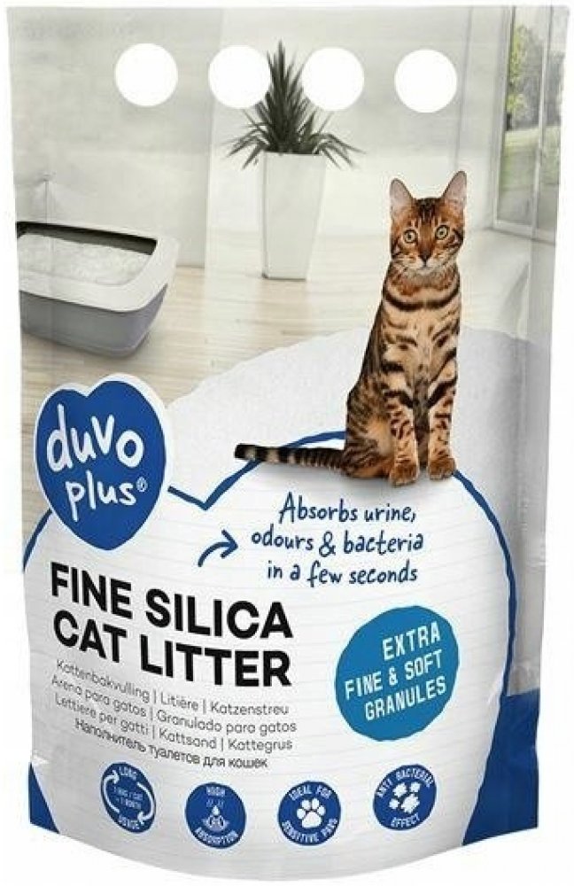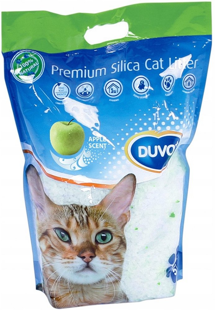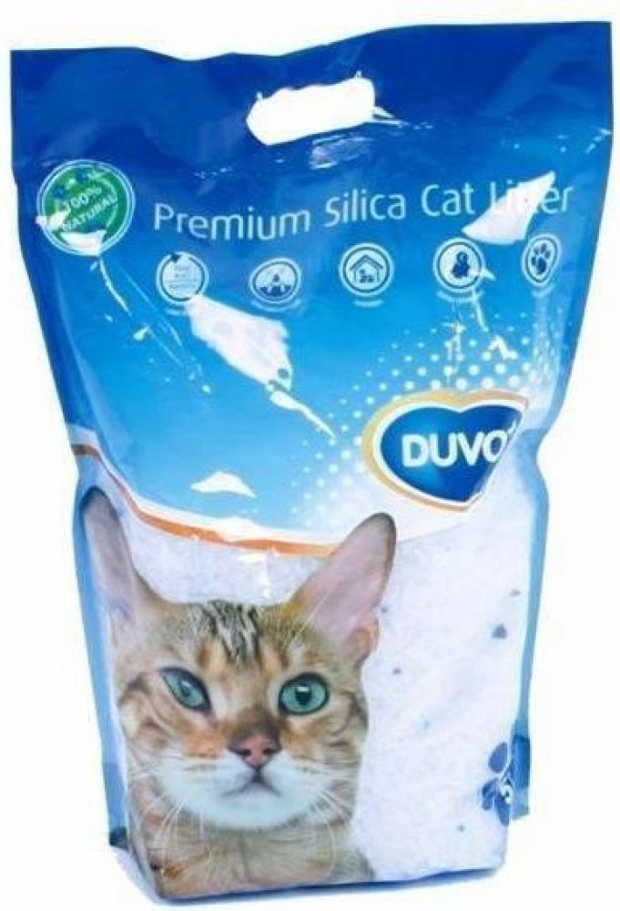 100% přírodní silikagelová podestýlka DUVO+ PREMIUM SILICA CAT LITTER do kočičích záchodků.