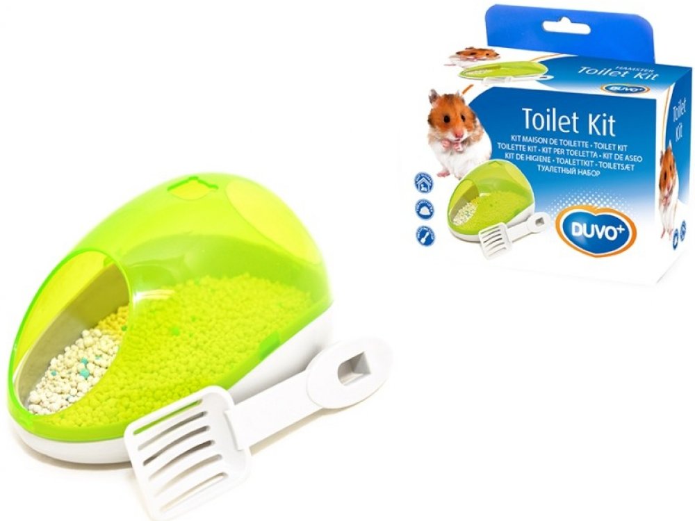 Toaleta: Křečci i další drobní hlodavci často vykonávají svou potřebu na jednom místě. Použití toalety s vhodnou savou podestýlkou a její umístění na „toto“ místo zvýší hygienu v ubikaci. Toaletu je třeba pravidelně čistit. Jednat pomocí lopatky, která je součástí balení, tak výměnou celé podestýlky a vymytí toalety.