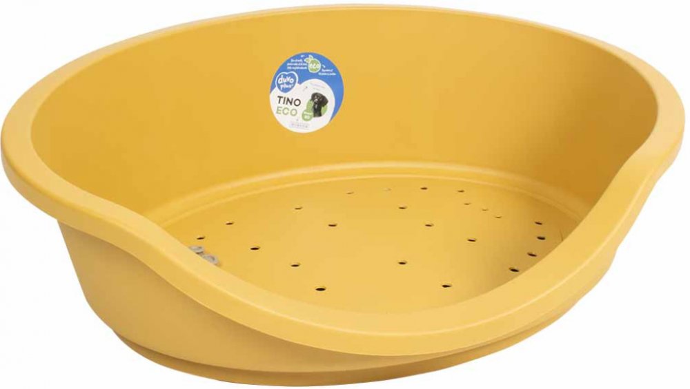 Tino Sleeper je vyroben z ekologického recyklovaného plastu. Prázdné PET lahve lze sbírat a recyklovat, aby se z nich vyrobil znovu vytvořený plast pro nové produkty, jako je tento skvělý psí koš. Ekologické výrobky řady duvoplus jsou snadno rozpoznatelné – hledejte na obalu zelený štítek ECO. Tino Sleeper je ergonomický, pevný a udržitelný košík pro psy. Tento oválný koš vyzařuje třídu a eleganci. Základna je perforovaná pro zajištění optimální ventilace polštáře nebo přikrývky. Postel se nebude pohybovat a podlaha je chráněna před poškrábáním díky protiskluzovým nožičkám.