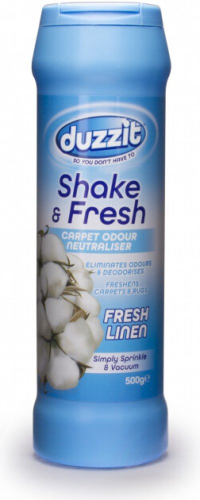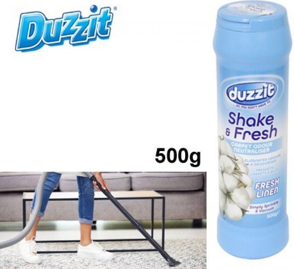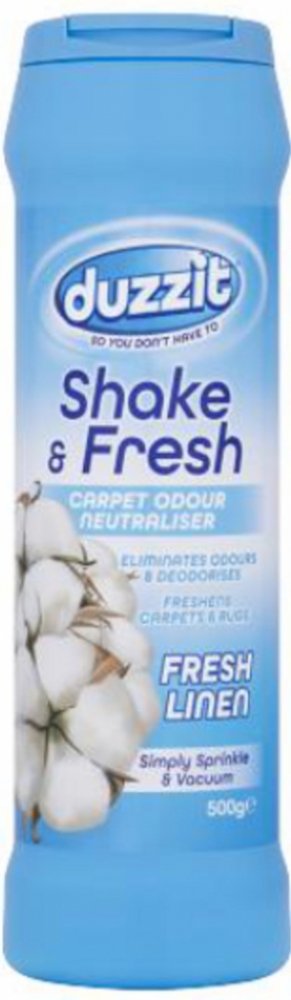 Duzzit Shake&Fresh pohlcovač pachů na koberce. Přinášíme Vám péči o Vaše bytové koberce, předložky a další textilní podlahové krytiny. Tento přípravek nejen že provoní Váš koberec, ale také pohltí nepříjemné pachy, které koberec do sebe po čase nachytá.