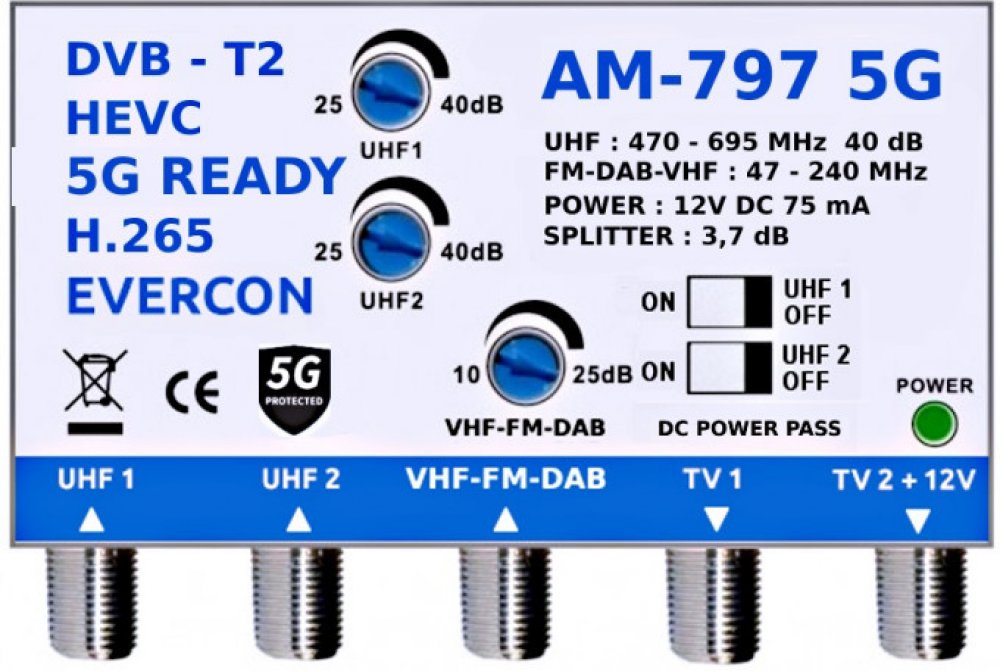 Evercon DVB-T2 zesilovač signálu AM-797 5G