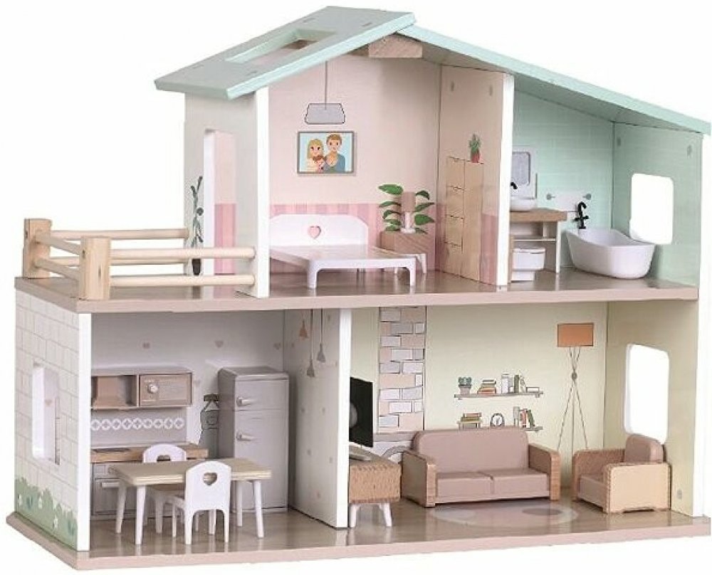 Domeček Anička Dvěděti je ve venkovském stylu a je plně vybaven nábytkem i doplňky. Najdete v něm kuchyni, útulný obývací pokoj, stylovou koupelnu s vanou, ložnici a terasu. Děti při hře rozvíjejí fantazii, sociální dovednosti i smysl pro detail. Hravý design, jemné barvy spolu s kvalitním provedením dělají z této hračky krásný doplněk každého pokojíčku nebo herny. Domeček je dodáván v rozloženém stavu a vyžaduje montáž. Návod k sestavení je součástí balení. Klíčové vlastnosti domečku pro panenky Anička Dvěděti16dílná sadaPlně vybavený dřevěný domečekVe venkovském styluPodporuje fantazii, tvořivost a hru na roleVede k představivé hřeKvalitní zpracování a atraktivní designVhodné pro děti od 3 let Obsah balení:domeček, nábytek, doplňky a návodRozměry:52 × 40,2 × 19,5 cm (v × š × h)Materiál:dřevo
