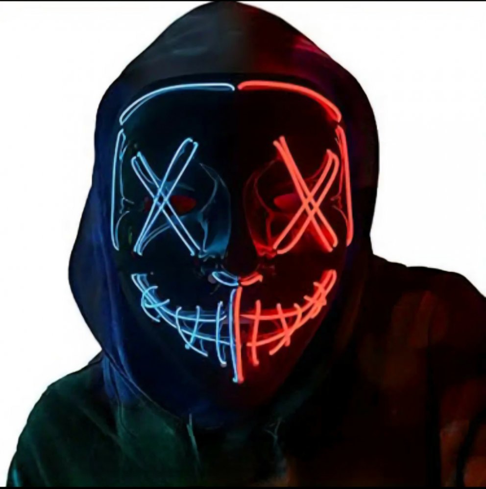 Popis: Proč svítit jednou barvou, když můžete zářit dvěma? Naše dvoubarevná LED maska je dokonalým doplňkem pro každého, kdo chce zanechat nezapomenutelný dojem. Design inspirovaný filmem "Očista" je nyní ještě působivější díky rozdělení na dvě barevné zóny, které v noci vytvářejí dechberoucí kontrast.