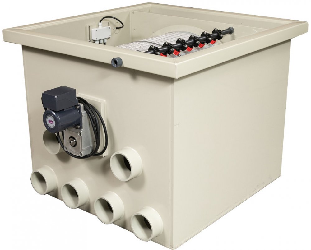DVS - Filtertechniek BUBNOVÝ FILTR PP65 Technické údaje PP65 Rozměry (D x Š x V)1052 x 880 x 706 mm (včetně výztužné objímky/motoru)Montážní výška 120 mmMax. průtok 65 m3/hodinuJezírko s koi kapry 65 m3Koupací jezírko 240 m3Sítové prvky 120µ, 3 kusy (tloušťka 10 mm)Počet oplachovacích trysek 6 kusůVchody 6x Ø110 mmVýchody 6x Ø110 mm1x Ø110 mm pro odvod odpadní vody1x vnější...