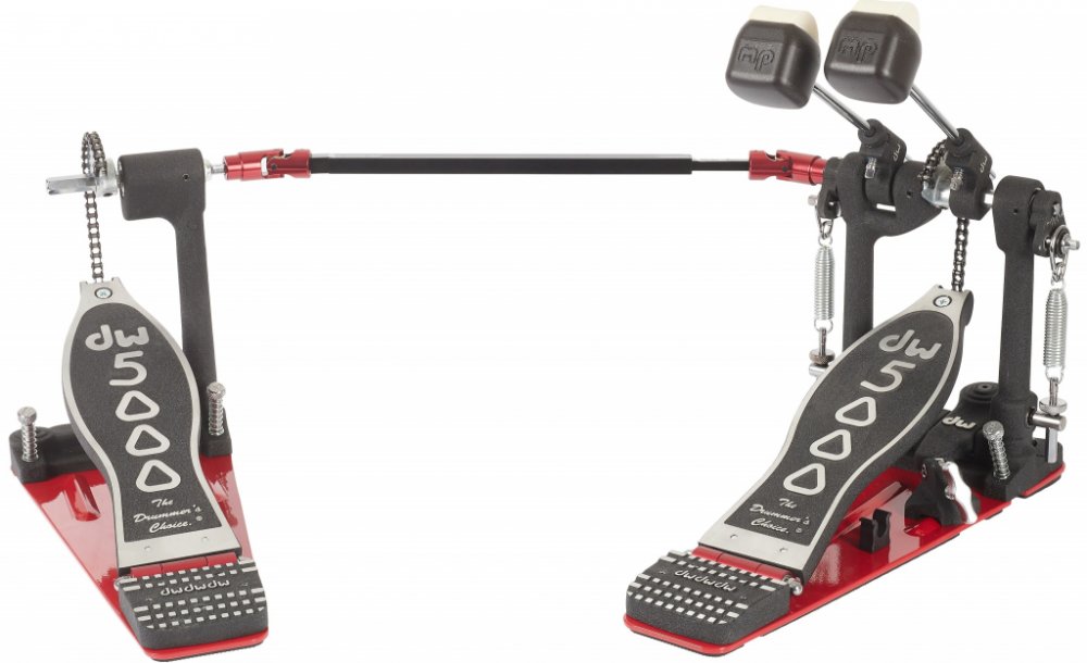 DW 5002-AH4 Accelerator - je double pedál s jednořadým řetězem a s Accelerator drive vačkou, která má rychlejší průběh ke konci sešlápnutí. Dále je pedál vybaven inovovánými ložisky paty, systémem uchycení k obruči BD, nyní je tříbodový "TRI-PIVOT Toe" ovládaný z boku pedálu, systém uchycení pružiny je nyní výklopný a protiskluzový suchý zip na spodní straně základny byl nahrazen gumou. Pedál je d...