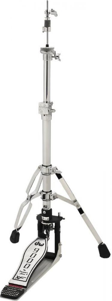 DW 9500TBXF - Masivní hi-hat stojan s dvěma dvojitýma nohama (nohy možno otáčet kolem kulatiny stojanu), s longboard pedálem, s pevnou základnou a unikátním systémem upevnění pedálu k pružině, s paměťovou objímkou s logem DW, stojan má také plastové vykládání, možnost náklonu spodního činelu, k dispozici jsou také dvě různě dlouhé vnitří kulatiny (na kterých je připevněn držák činelu), filcové uch...