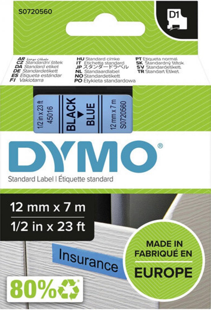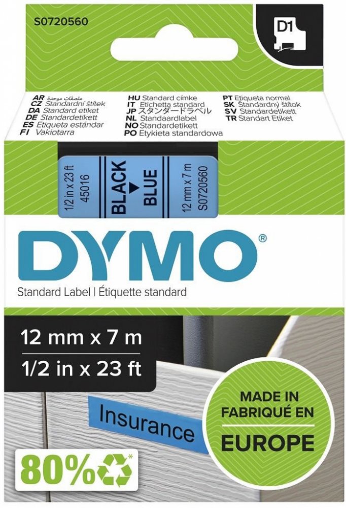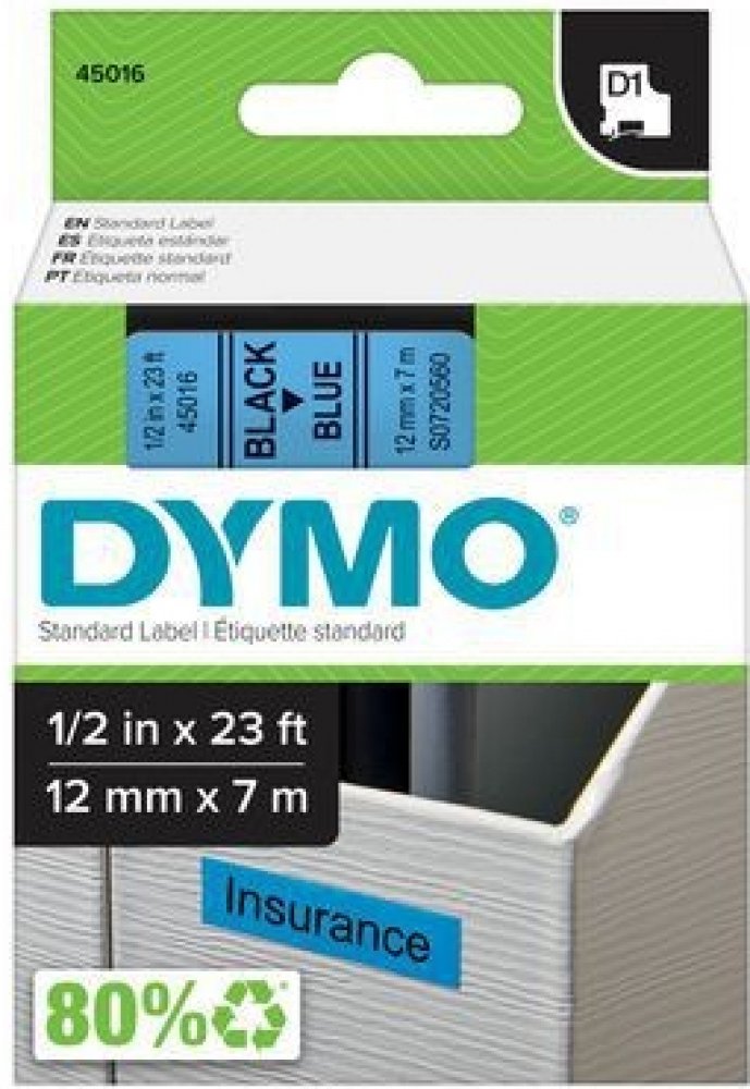 Dymo 45016 černý tisk/modrý podklad, 7m, 12mm