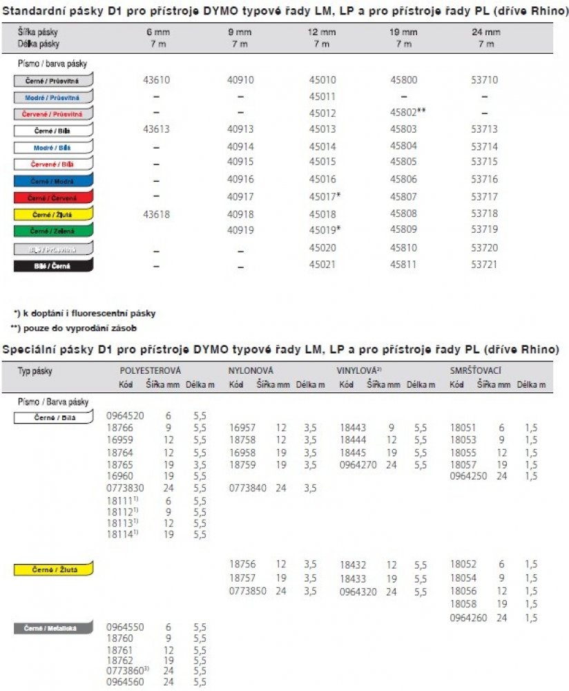 · Dymo Rhino 5200 (šíře pásek: 6, 9, 12, 19 mm)