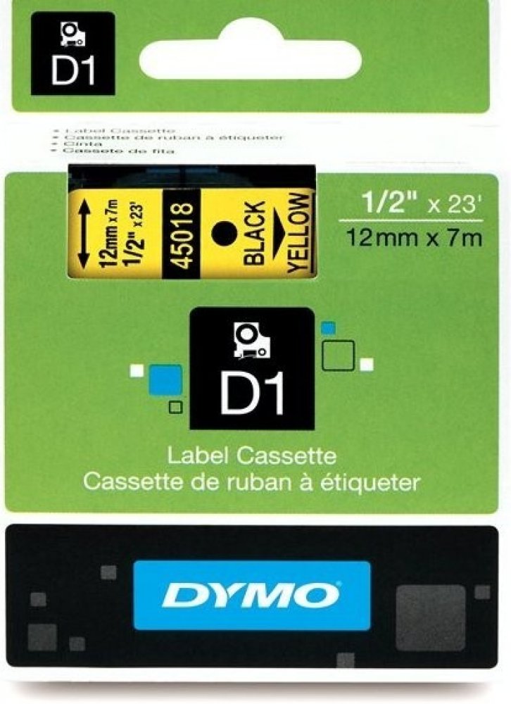 Dymo 45018 černý tisk/žlutý podklad, 7m, 12mm
