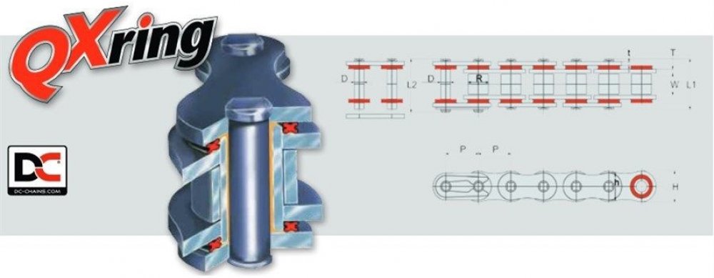 Řetěz DC sekundární, typ 520 MZX2-G, kroužkový X-ring, zlatý, zesílený. Rozměry:rozteč čepů P - 15,875mmcelková šířka řetězu včetně konce čepu L1 - 20,8mmvnitřní šířka článku W - 6,35mmPevnost v tahu ATS daN - 4180Optimální kubatura - 125-1000ccm. Typ spojky - PLS nýtovací.