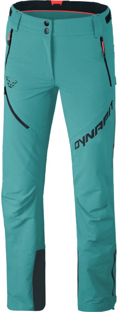 Dámské softshellové skialpové kalhoty značky Dynafit jsou vyrobené z materiálu Dynastretch (65% polyamid, 26% polyester, 9% elastan).