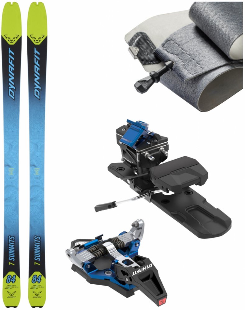 Kompletně nachystaný a dokonale vyvážený skialpový set se skládá z inovovaných lyží Dynafit Seven Summit, vázání Dynafit Radical Long Travel a příslušných Dynafit pásů.