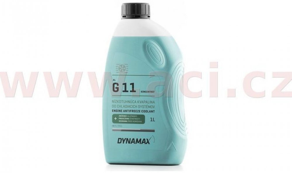 1 díl DYNAMAX COOLANT G11 : 1,5 dílu vody – použití do – 26 °C