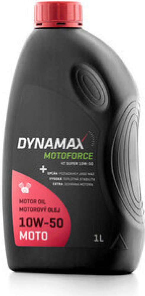 Dynamax Motoforce 4T Super 10W-50 je vysoce kvalitní polosyntetický olej doporučený pro vysoce výkonné čtyřtaktní vodou chlazené benzínové motory u motocyklů.