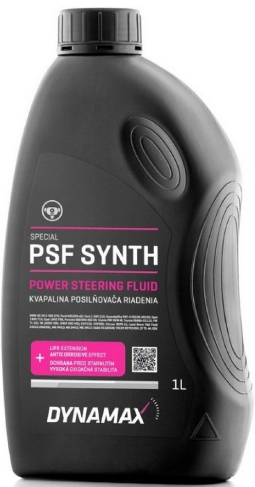 Dynamax PSF Synth Charakteristika: Syntetický hydraulický olej vyvinutý pro vysoce namáhané systémy posilovače řízení, centralizované hydraulické systémy a tlumiče, které dokáží dosáhnout trvalou teplotu oleje až do přibližně 140 ° C. Jedinečný balík aditiv zajišťuje optimální teplotní stabilitu, vysokou oxidační stabilitu, vynikající vlastnosti za studena, vysokou střihovou stabilitu. Osvědčená OEM technologie. Použití: Dynamax PSV SYNTH je vysoce kvalitní olej, který splňuje požadavky normy VW TL 521 46. Má optimální výkon jako centrální hydraulický olej v posilovači řízení, pro řízení zadní nápravy, úroveň regulace, tlumiče nárazů, na aktivní tlumení a podporu motoru, pro hydrostatický pohon ventilátoru, alternátor a klimatizace pro stabilizační a trakční systémy (ABS / ASR / ASC), pro centrální uzamykání, hydraulické posilovač brzd. Vhodný pro VW, Audi, Seat, Škoda. Specifikace: - BMW 83 29 0 429 576, Ford M2C204-A2, Ford 1 384 110 - Hyundai/Kia PSF-4 03100-00130, Opel 1940 715, Opel 1940 766 - Porsche 000 043 203 33, Toyota PSF NEW-W, Toyota 08886-01115 - VW TL 521 46 (G002 000, G004 000 M2) - CHF11S, CHF202, Citroen 9979 A1 - Land Rover PAS Fluid 14315 LRN2261 - MB 343.0, MB 344.0, MB 345.0 - SAAB 93160548 - VOLVO 30741424, ZF TE-ML 02K