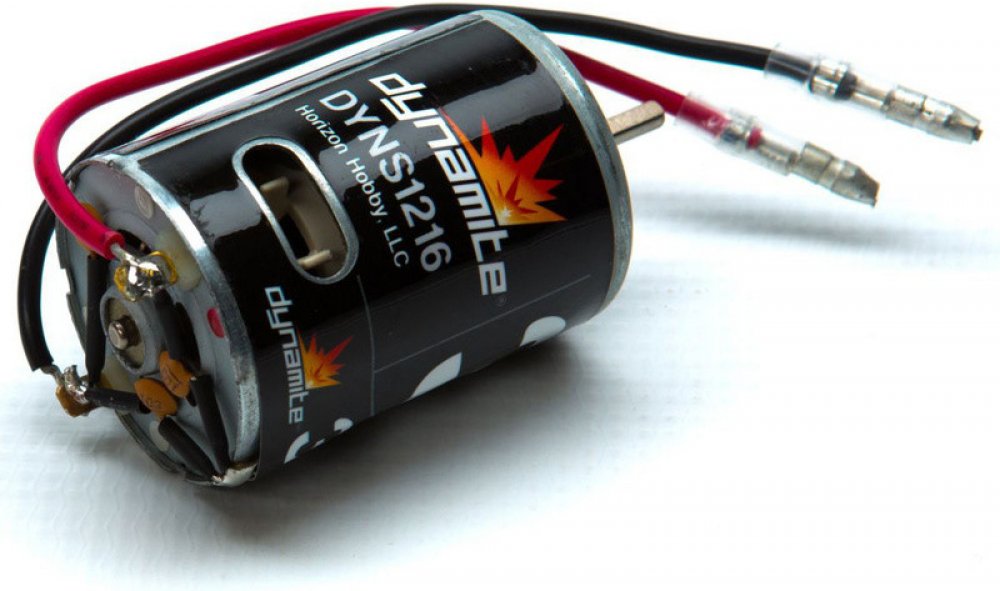 Stejnosměrný motor velikosti 540 s 35 závity. Napájecí napětí až 5 - 8 čl. NiMH nebo 2 čl. LiPol. Průměr hřídele je 3.175 mm. Technické údaje Dynamite stejnosměrný motor Tazer 540 35T Použití : RC auta Typ : Stejnosměrný Počet pólů : 2 Počet závitů : 35T Otáčky : 3300 ot/min/V Maximální napájecí napětí : 3 články LiPo Proud naprázdno : 1,7 A při 7,5 V Vnitřní odpor : 100 mΩ