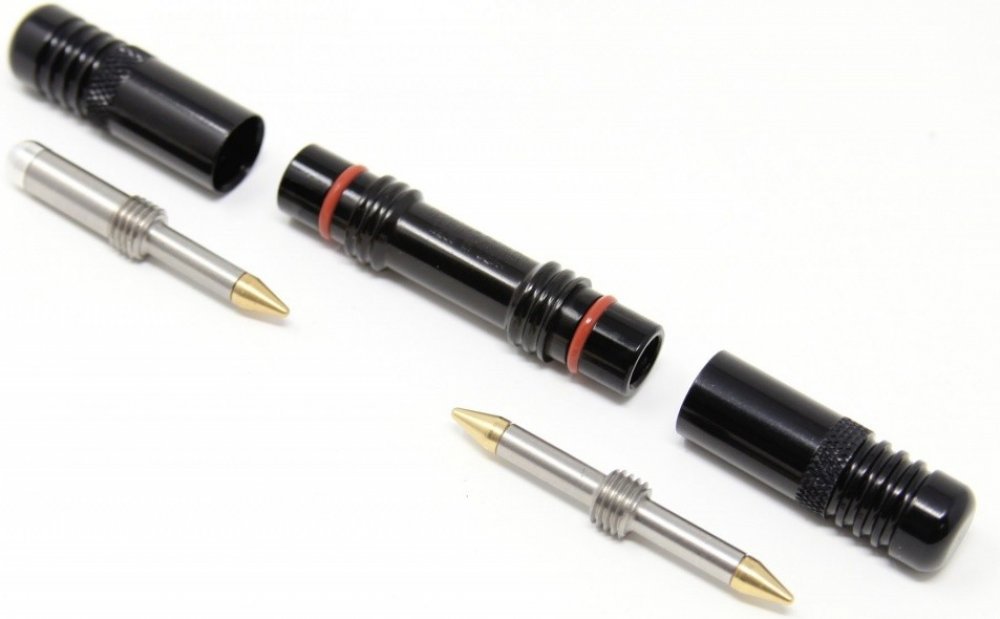 Dynaplug Racer Kit Pro Opravná hliníková sada Dynaplug Racer Pro je vylepšením legendární sady Racer. Váží pouhých 26 g a bude se hodit všude tam, kde tmel již nepomůže. Racer Pro nabízí proti svému předchůdci dvakrát větší potenciál pro opravu defektů. Na propíchnutých bezdušových pláštích zacelíš malé i větší díry během okamžiku. Produkty firmy Dynaplug® jsou navrženy jako snadno použitelné řešení pro svépomocnou opravu defektů bezdušových plášťů. Obsah balení: - Nástroj Dynaplug Racer Kit Pro - aluminiové pouzdro - Standard Twin Tube™ - oboustranná tuba pro 2 standardní knoty - Standard/Megaplug Twin Tube™ - oboustranná tuba pro 1 standardní a 1 megaknot - Tuby jsou nabité 3 ks knotů s hrotem a 1 ks megaknotu - Čisticí kartáček na tuby
