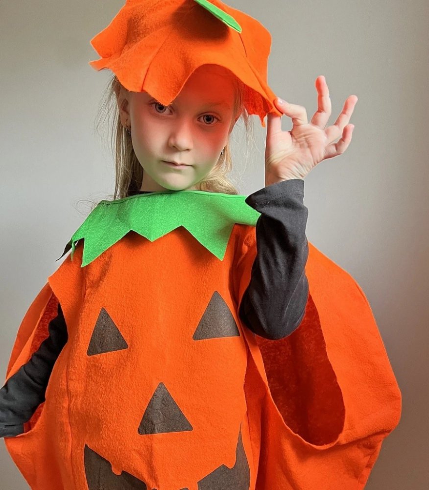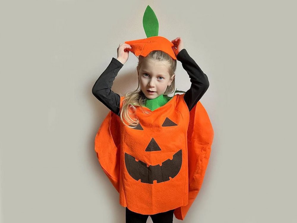 Karnevalový kostým promění každé dítko v roztomilou dýni. Je vyrobený z pestrého barevného filcu. Karnevalový kostým promění každé dítko v roztomilou dýni. Je vyrobený z pestrého barevného filcu. Má velké otvory na ruce, zapíná se v zadní části na suchý zip. Ke kostýmu patří čepička s lístečkem, která na hlavě drží díky pružence.Průměr kostýmu je 69 cm, délka 55 cm.Průměr čepičky je 30 cm.Sada: 2 ...