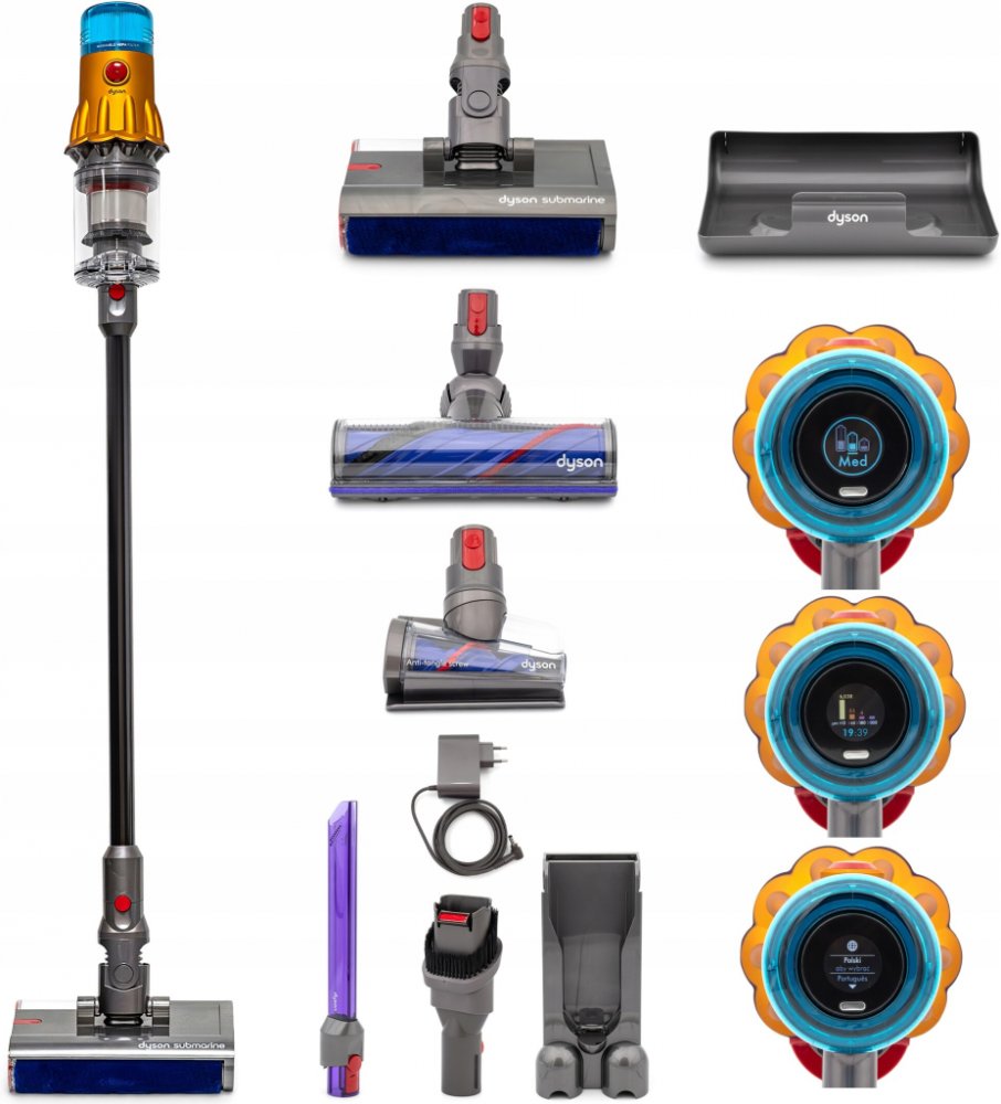 Tyčový vysavač Dyson V12s Detect Slim Submarine myje tvrdé podlahy čistou vodou a účinně odstraňuje tekutiny, zaschlé i odolné nečistoty bez šmouh. Díky hubici Dyson Motorbar™ zajišťuje silné vysávání koberců i tvrdých podlah a automaticky zabraňuje namotávání vlasů a chlupů, zatímco kónická hubice je ideální pro úklid čalounění, schodů a auta. Pohodlné ovládání pomocí tlačítkového vypínače, tři v...