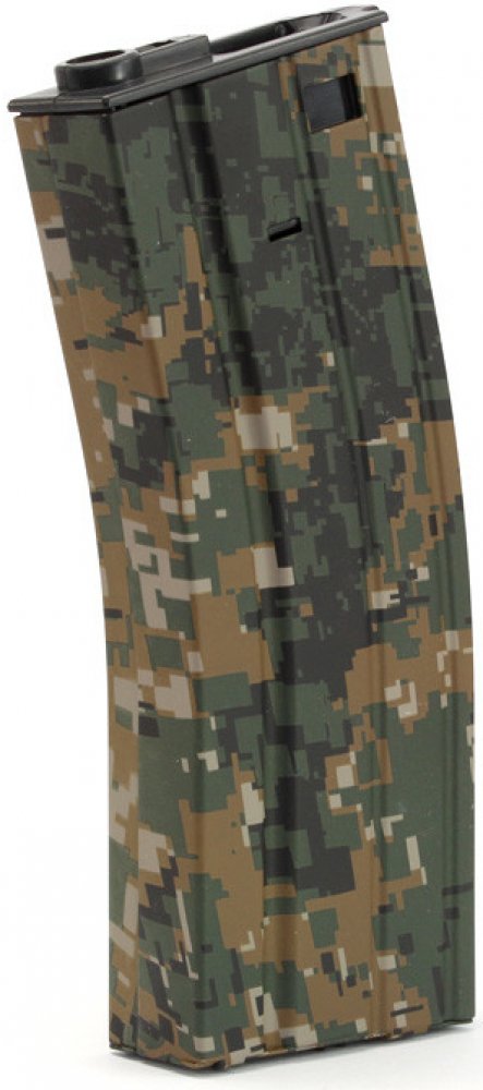 Kovový vysokokapacitní zásobník pro elektrické zbraně řady M4. Pojme až 300 kuliček, které se jednoduše vsypou horním uzavíratelným otvorem v zásobníku. Pomocí ozubeného kolečka (které vystupuje ze dna zásobníku) se natáhne vnitřní mechanismus, který kuličky automaticky podává do zbraně. Na jedno plné natažení před střelbou je tedy teoreticky možné vystřílet celý zásobník.