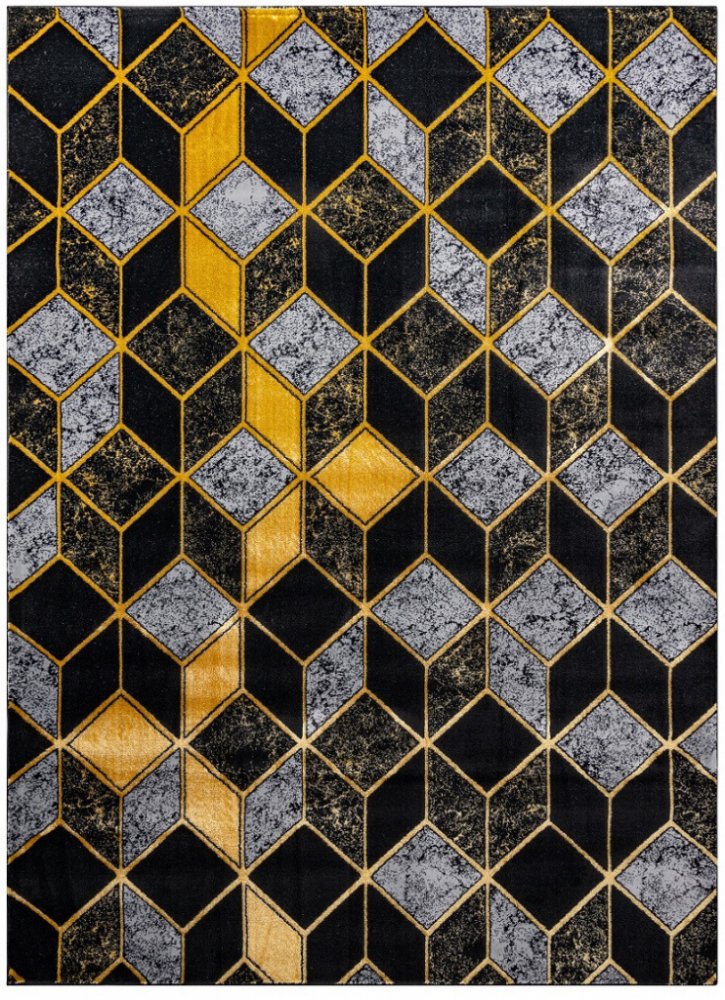Dywany Łuszczów Gloss 400B 86 3D geometric black/gold Černá