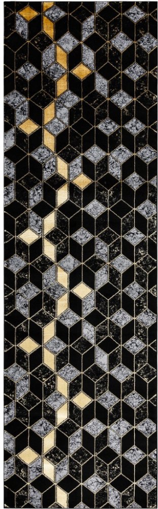 Kusový koberec, Běhoun GLOSS moderni 400B 86, 3D černý / zlato - stylový, glamour, art deco, 3D geometrický černý / zlato