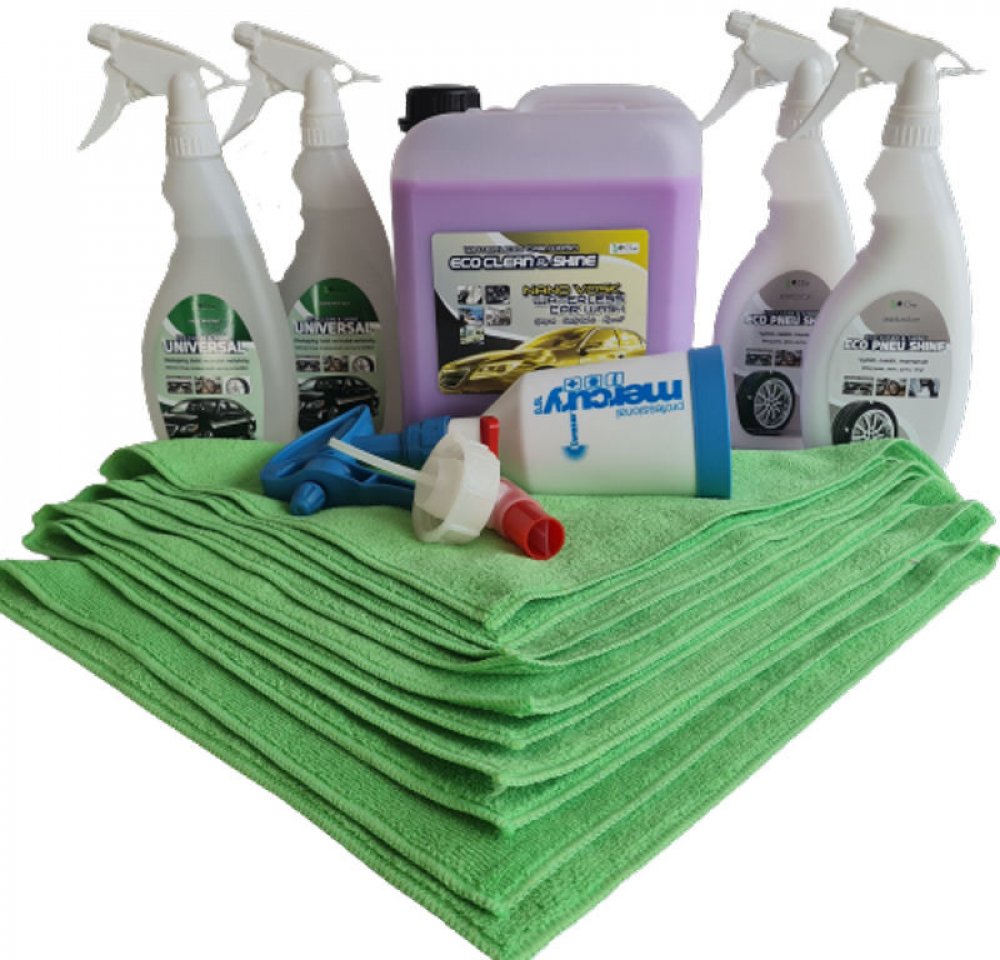 Sada autokosmetiky včetně 10 x kvalitních mikro utěrek.