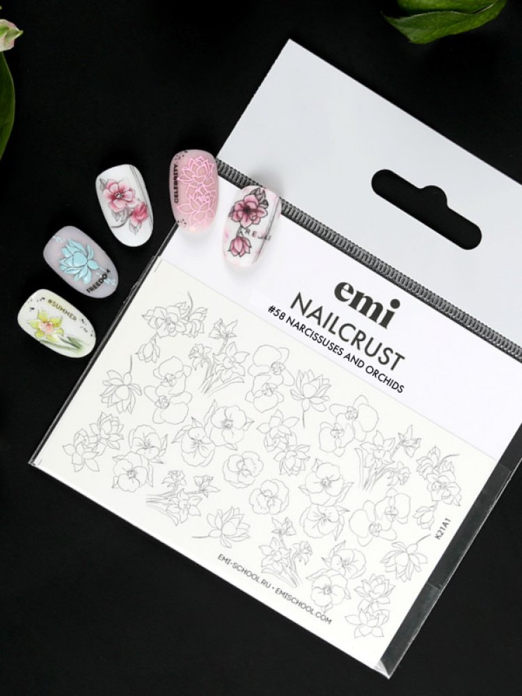 E.Mi Vodolepka NAILCRUST Pattern Slider 58 Narcissuses and orchids
