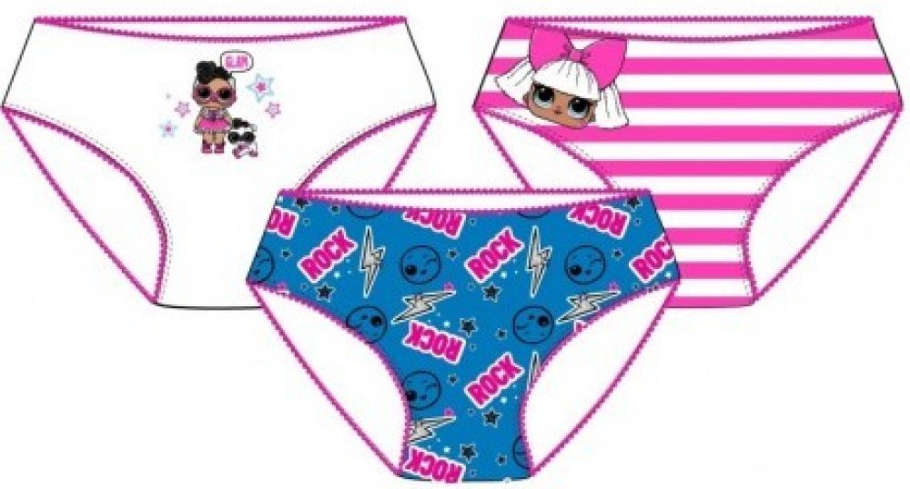 Dívčí bavlněné spodní prádlo s motivem oblíbených okatých panenek "Lolek". Balení obsahuje 3 kusy.