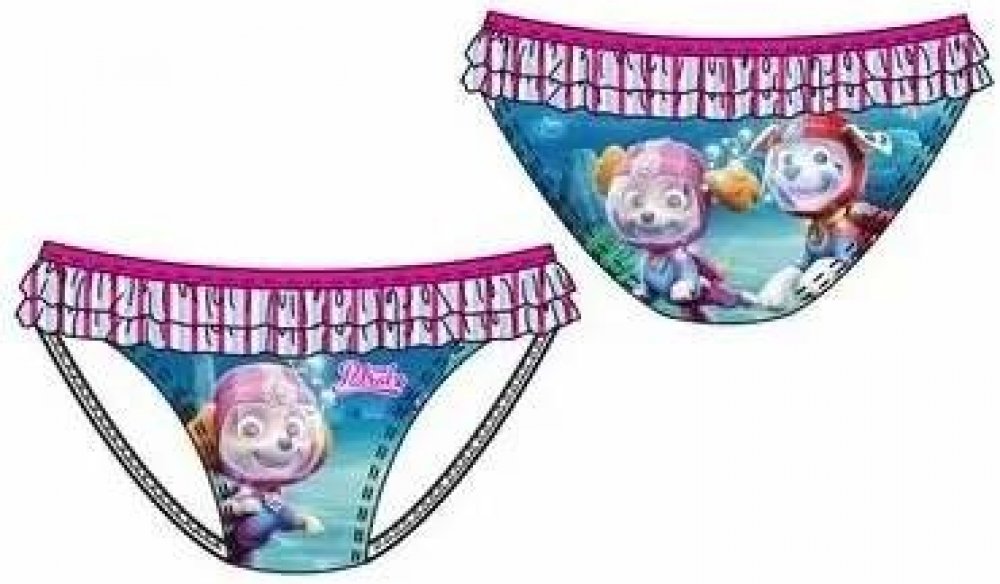 Dětské kalhotkové plavky s Tlapkovou patrolou s volánkem. Materiál plavek je poměrně elastický, takže se dobře přizpůsobí tělu, snadno se oblékají a pohodlně se nosí.