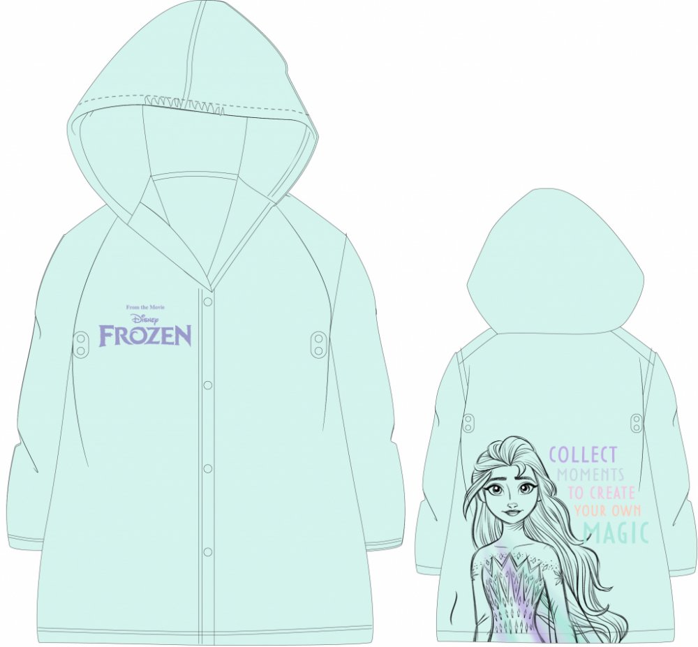 S dětskou pláštěnkou můžou do deště i princezny. Dívčí pláštěnka Frozen s Elzou je krásně měkká, poddajná, se zapínáním na druky.