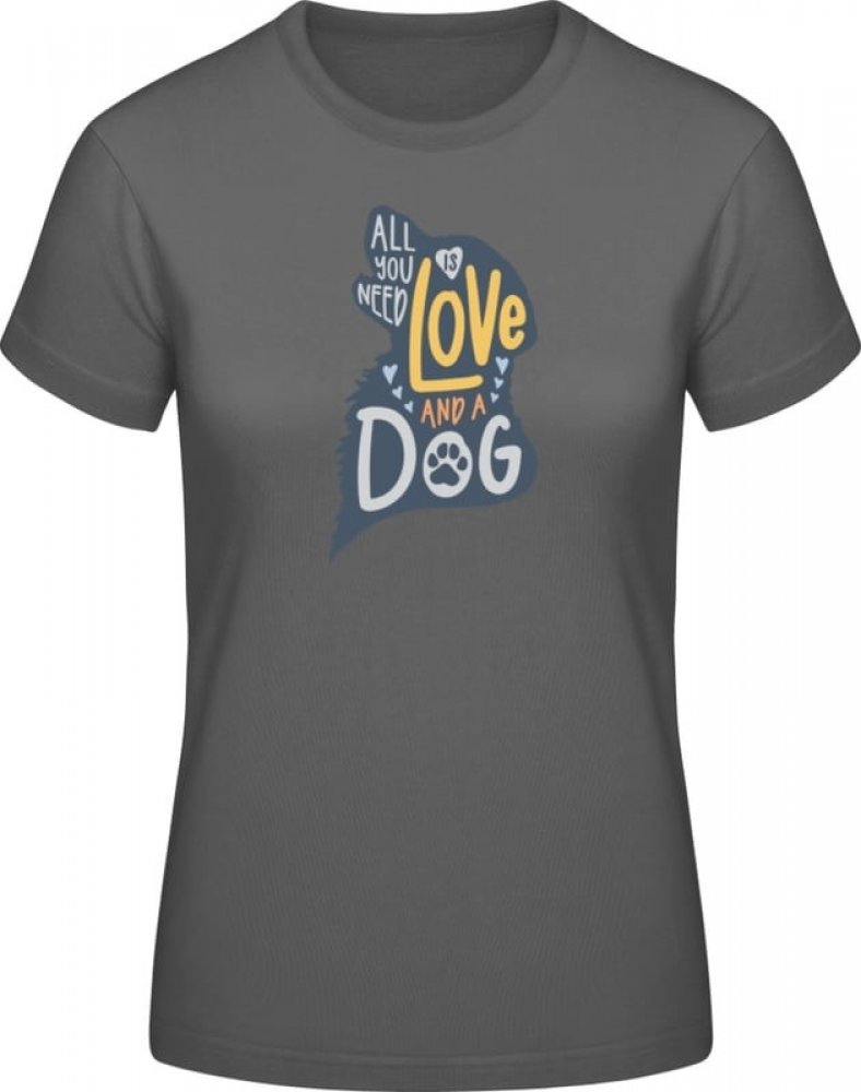 E190 Tričko Design Vše co potřebujete je láska a pes Tmavěšedá