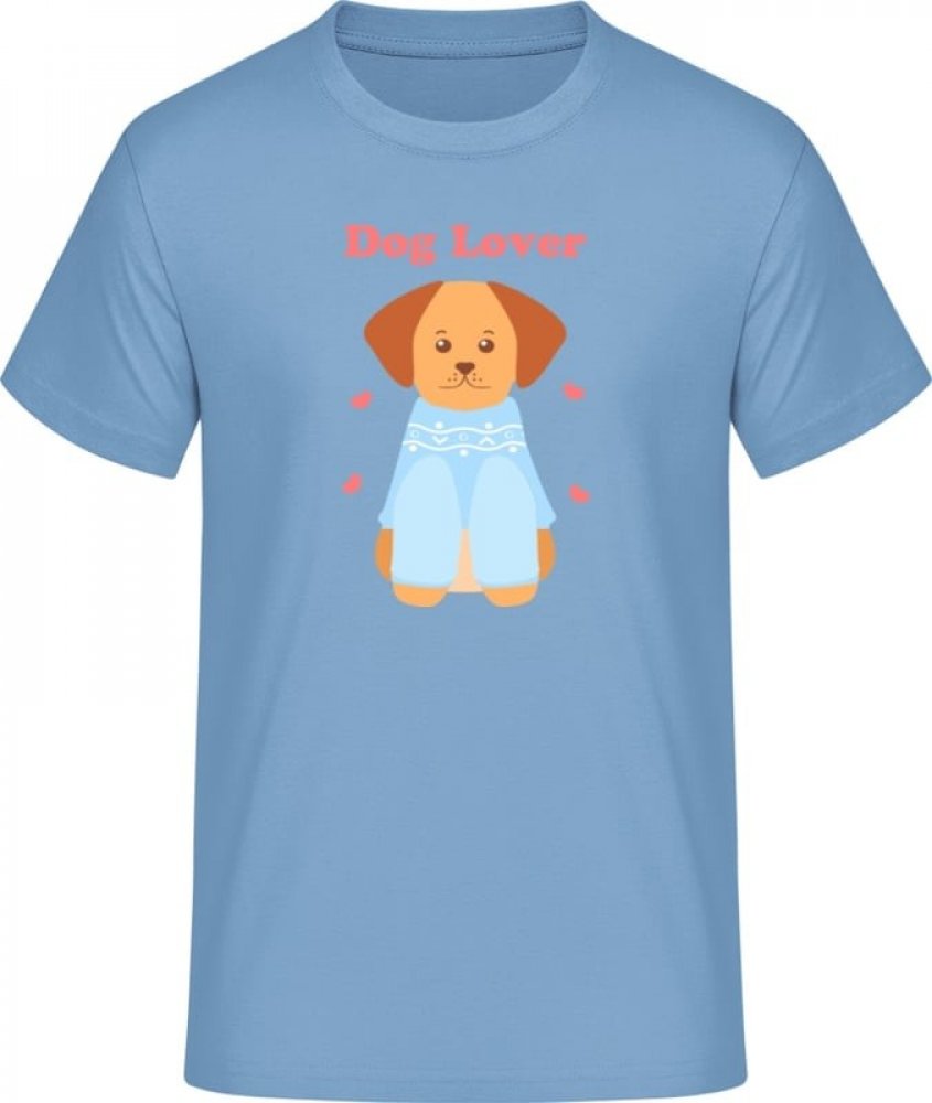 E190 tričko Nápis Dog Lover a pejsek obloha modrá