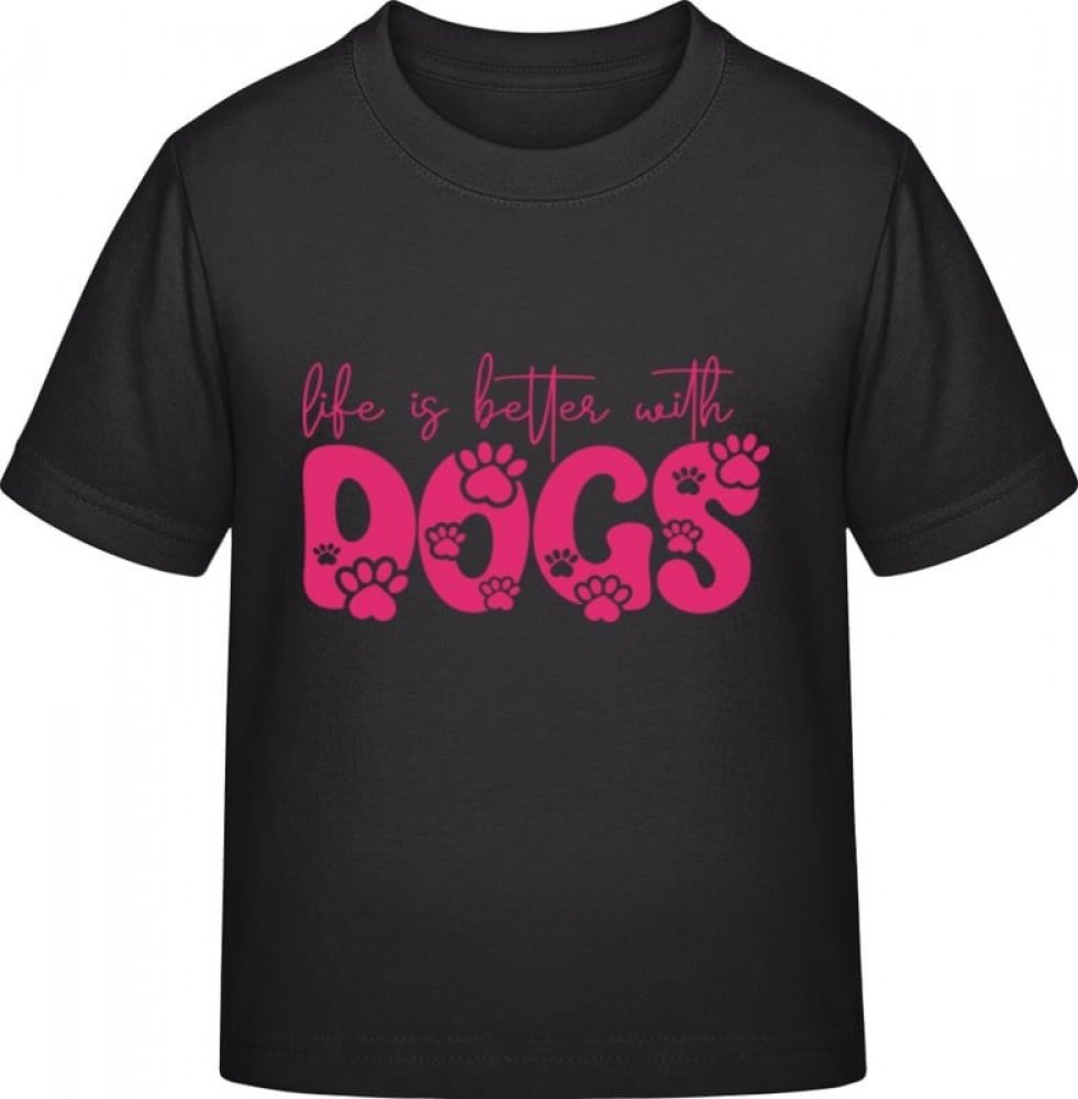 E190 tričko pro děti Nápis Se psy je život lepší černá