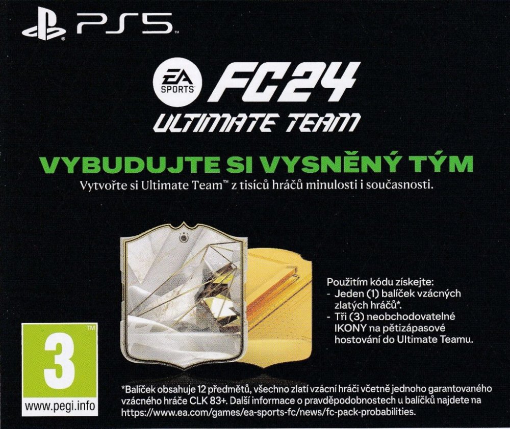 DLC balíček obsahuje: 1 balíček vzácných zlatých hráčů (12 zlatých hráčů, garance min. 1 hráče s 83+ CLK) 3 neobchodovatelné IKONY na 5 zápasů hostování do vašeho Ultimate Teamu.