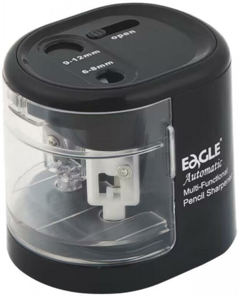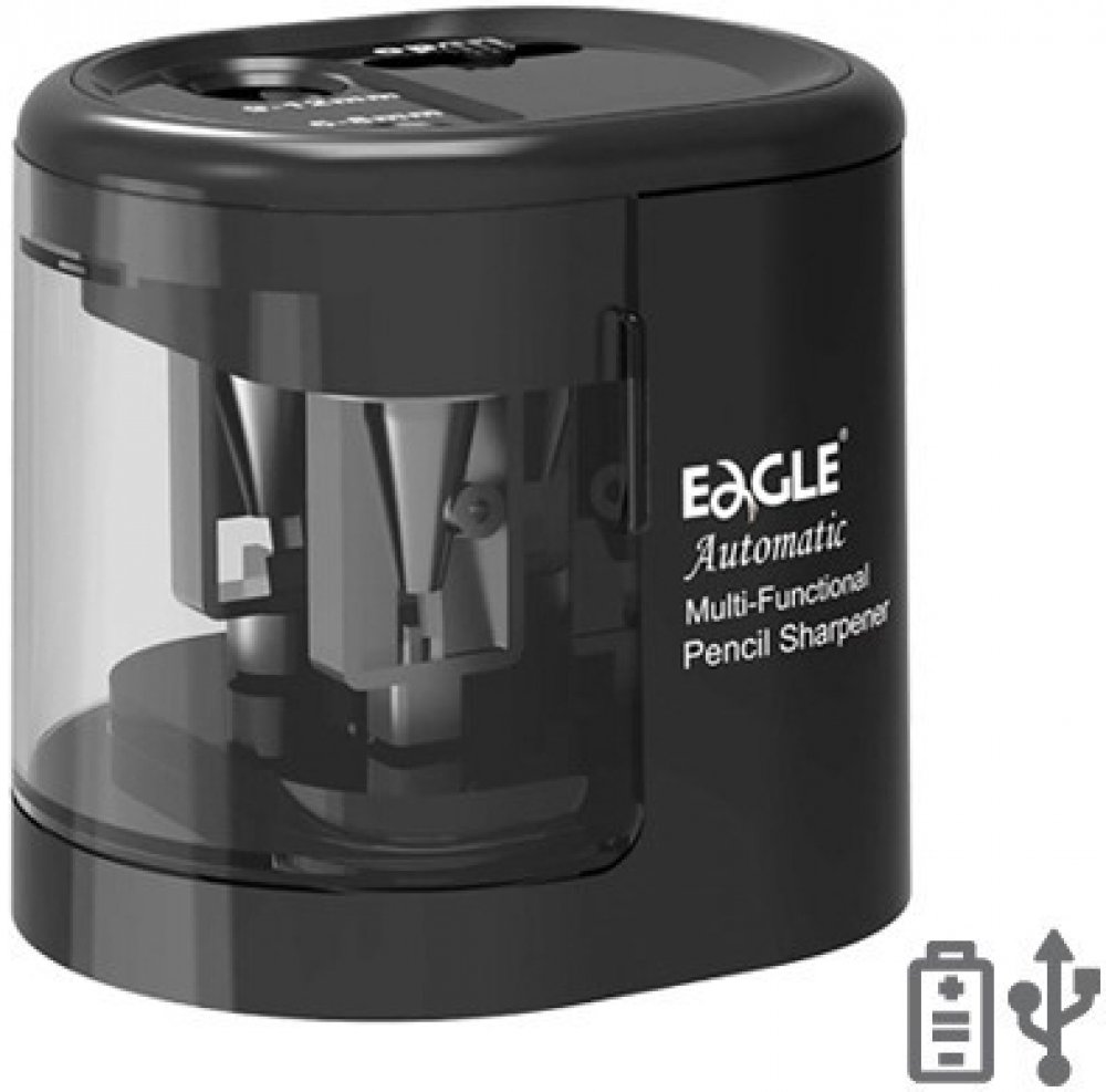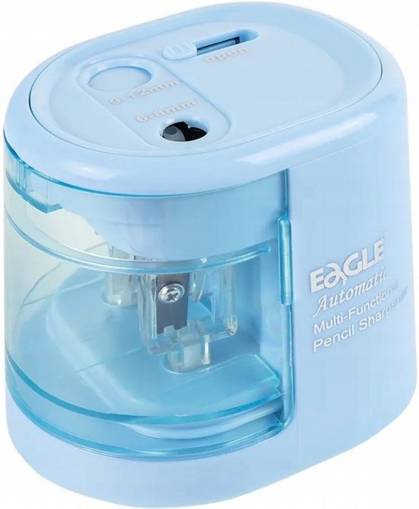 Struhadlo na tužky/pastelky dvou rozměrů 6-8 mm a 9-12 mm. Struhadlo obsahuje odpadní nádobu. Napájení na baterie 4x AA 1,5V (nejsou součástí balení) nebo pomocí přiloženého USB kabelu. Jako zdroj napájení ze sítě můžete použít adaptér/nabíječku mobilního telefonu, nebo je možné připojit powerbanku (nejsou součástí balení). Součástí balení jsou 2 náhradní čepele. Zámek mikrospínače - bezpečný pro děti.