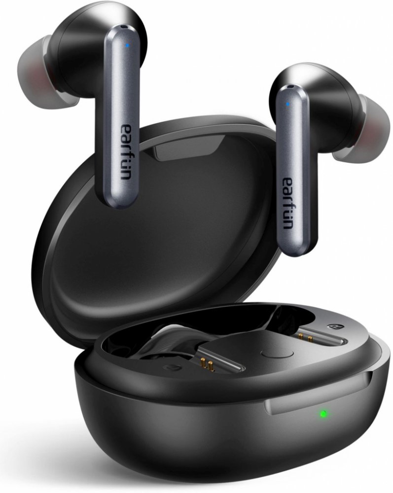 bezdrátová 52 g Bluetooth EarFun univerzální uzavřená špunty do uší stereo (2) s integrovaným mikrofonem 6 h s bezdrátovým nabíjením 24.0 h 10 mm s dynamickým měničem IPX5 bez podsvícení s Bluetooth 5.2 s aktivním potlačením hluku (ANC) s dobrou kvalitou hovoru se silikonovými špunty 500 mAh