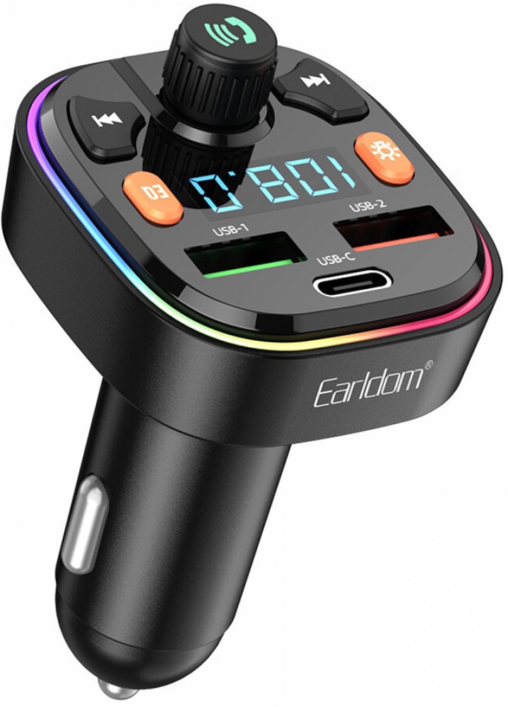 FM transmitter Earldom ET-M70, Bluetooth, USB, 3.1 A – černá
