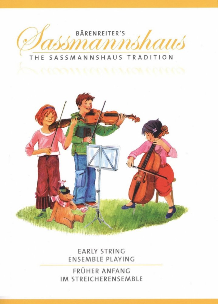 Noty pro smyčcové trio, 2 housle, violoncello.Ranná hra ve smyčcovém souboru.The Sassmannshaus “Early Start” string methods cultivate playing together as early as possible, initially in duets. However playing in larger mixed ensembles is also encouraged and this tried-and-trusted edition for strings provides the perfect start for this. The first songs can all be performed in canon: each piece is notated in violin, viola and bass clef so that all three string instruments can play together in any number and combination. The collection then continues with through-composed pieces by such composers...