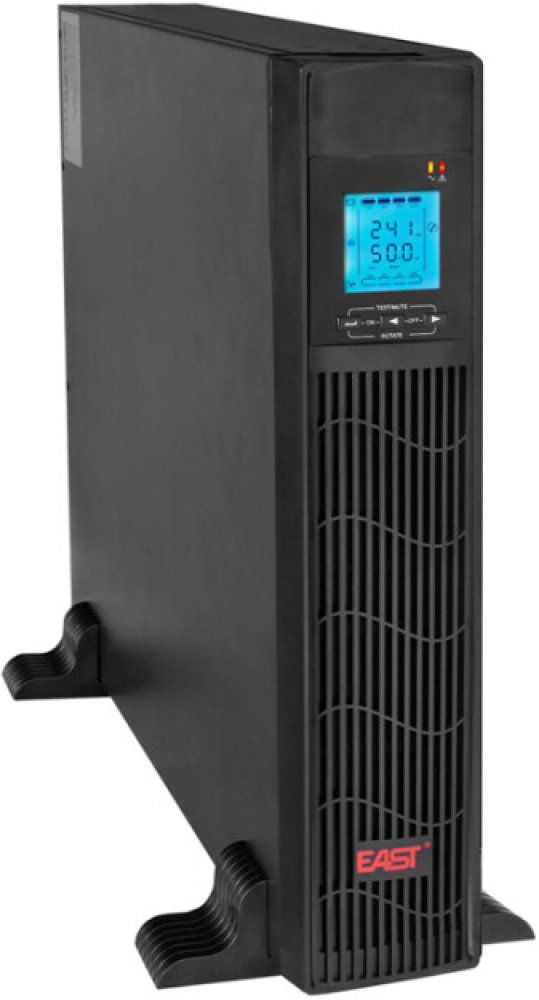 UPS1000-RT-ON je záložní zdroj UPS firmy EAST typu Online, který nabízí komplexní ochranu a velký výkon v malé a ekonomické skříni. Záložní zdroj UPS chrání proti výpadkům napájení a výkyvům napětí. Kromě toho tento UPS zajišťuje ochranu proti přepětí RJ-45(in/out). Vybaven stabilizátorem napětí (AVR), UPS zajistí čisté a stabilní napájení připojeného zařízení. Ideální pro každou aplikaci doma nebo v malé kanceláři. UPS1000-RT-ON má displej LCD, který poskytuje základní informace o stavu zařízení, konektor USB, který umožňuje připojení k počítači, konektor RS-232, vypínač EPO a slot na síťovou kartu.