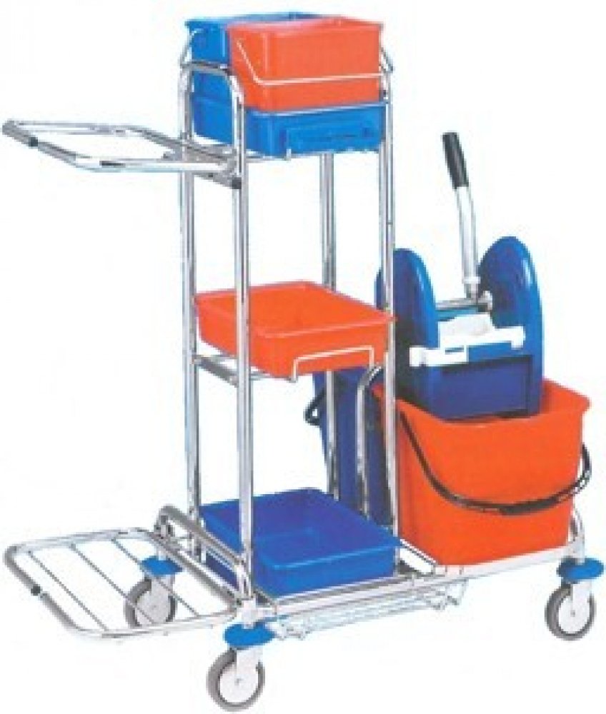 Úklidový vozík je vybaven: podvozkem s dvěma bočními držáky, držákem ždímače, držákem pytle 120l, roštem, dvěma držáky vaničky, podpěrou mopu, dvěma kbelíky 17 l, dvěma kbelíky 6 l, třemi vaničkami JOOKY, ždímačem a držákem tyče ALU.