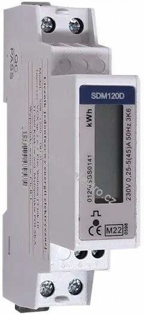 Jednofázový, jednosazbový podružný elektroměr pro montáž na DIN lištu.Elektroměr SDM120D (MID) slouží k indikaci spotřebované elektrické energie jednofázového střídavého proudu s přesností ve třídě 1/B.Elektroměr je v souladu se směrnicí EU 2004/22/EC s názvem MID - Measuring Instrument Directive z 31. března 2004.Zařízení měří množství činné energie (kWh) pomocí pulzního výstupu MID směrnice Přístroje schválené podle směrnice pro měřicí přístroje (MID - Measuring Instrument Directive) usnadňují bezproblémové rozdělení nákladů.Elektroměry mající schválení MID jsou výhodné tím, že jimi naměřené hodnoty jsou certifikované, s ověřenou měřicí přesností. To je důležité v případě, že vzniknou neshody na téma spravedlivé rozdělení nákladů na energie.Elektroměry usnadňují rozdělení nákladů za odběr mezi různé nájemce, např. obchody a butiky v nákupních galeriích, firmách s bloky kanceláří nebo mezi různé aerolinky a funkce (např. manipulace se zavazadly) na letištích.Skutečnost, že řada těchto komerčních provozů není zpočátku navržena na podružná měření, neznamená žádný problém. Elektroměry je možno elegantně zařadit do instalace všude tam, kde je to třeba.