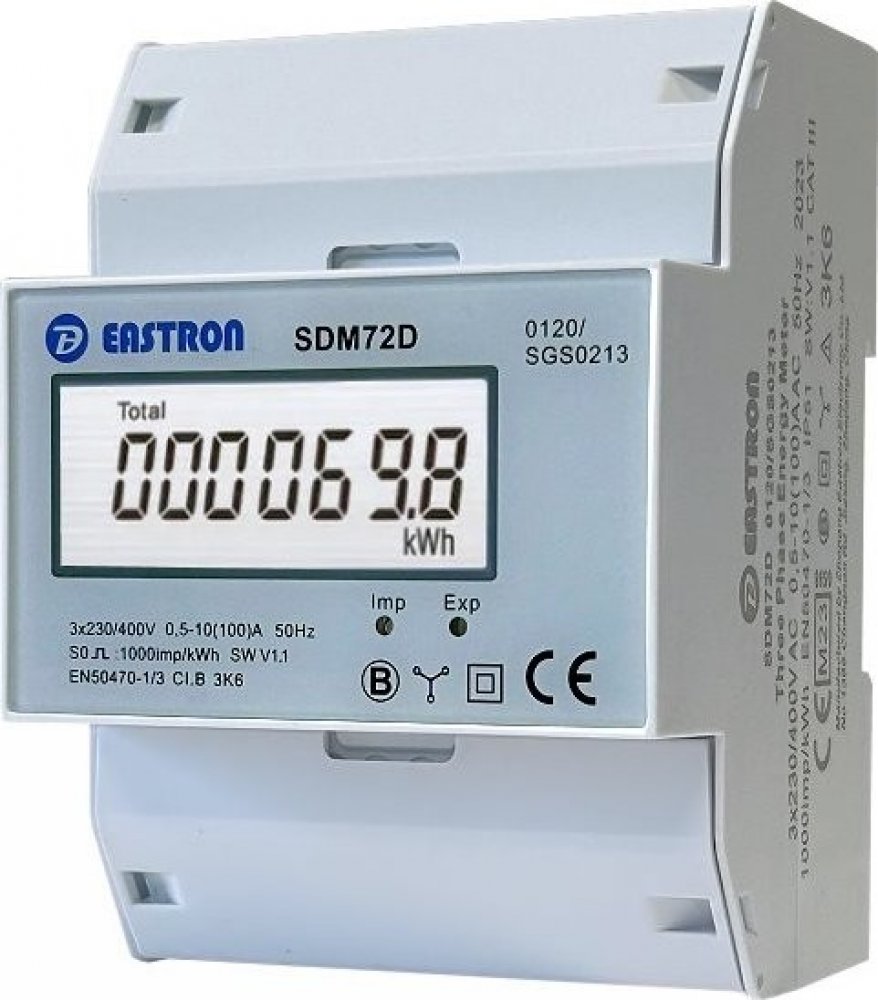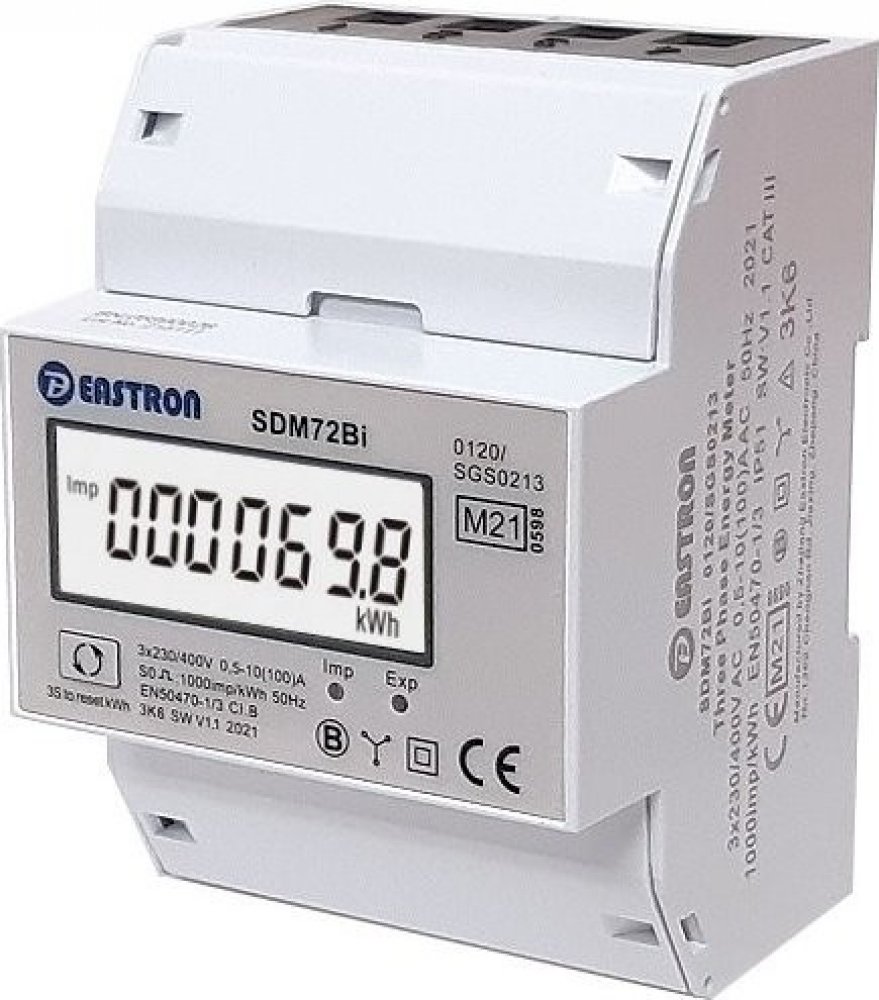 Elektroměr 3F na DIN lištu třífázový EASTRON SDM72 BI, MID, digitální, RESET - přesné a efektivní měření spotřeby elektrické energie