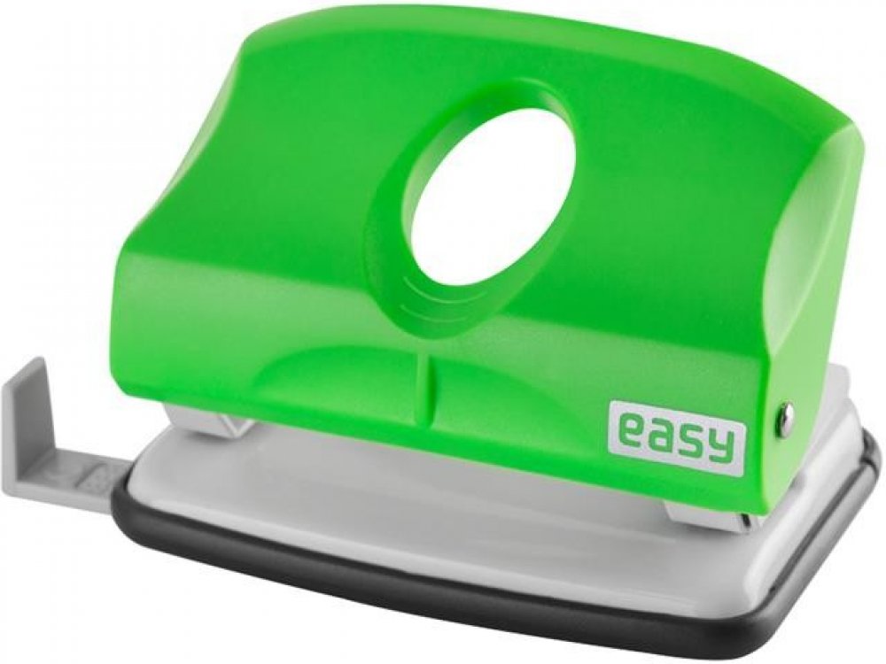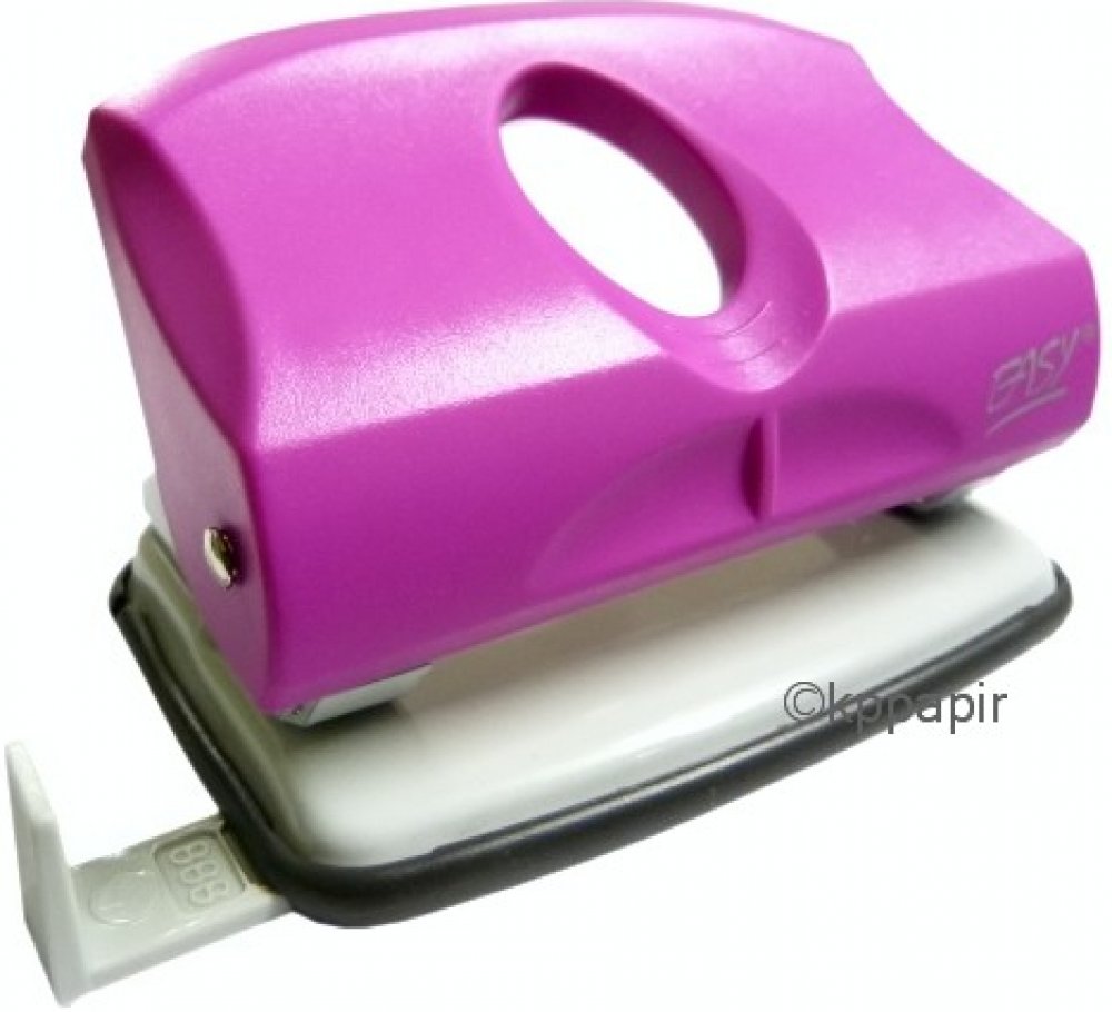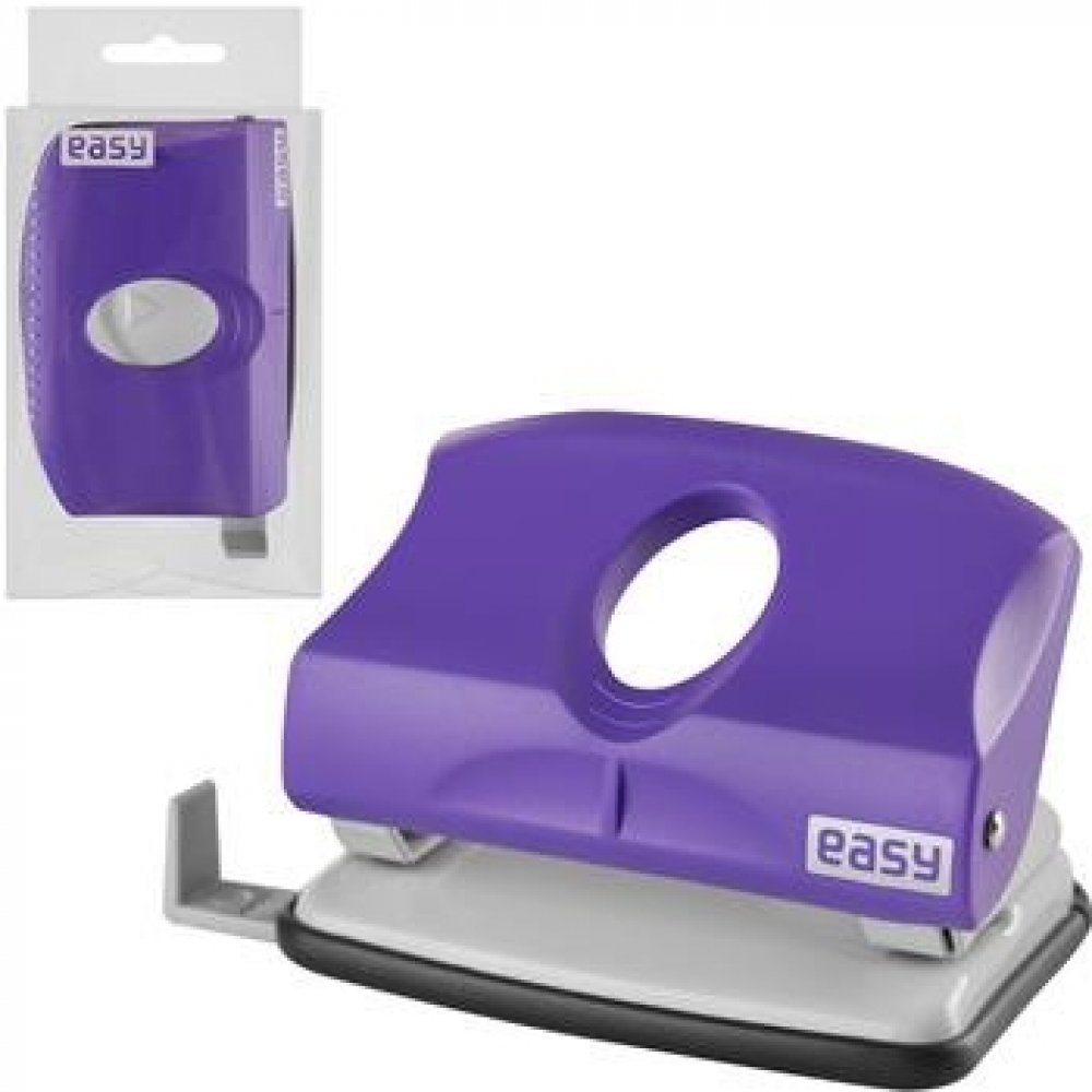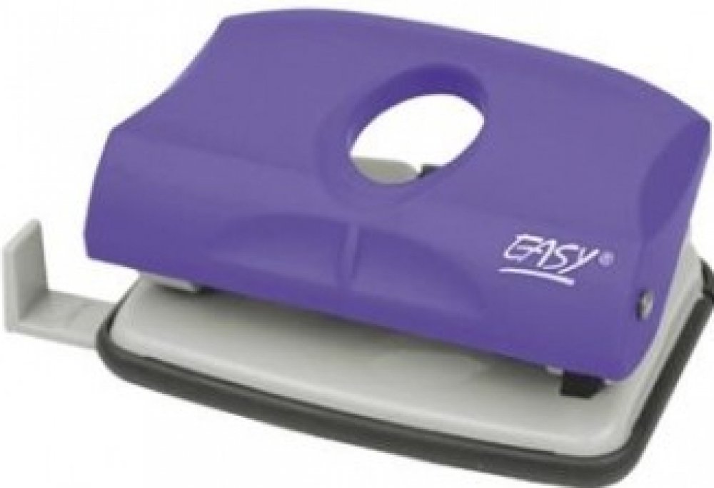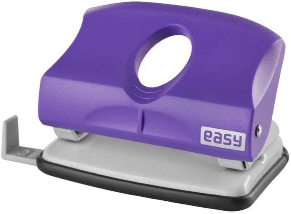 Děrovačka Easy je vyrobena z umělé hmoty, je lehká a odolná. Široká páka poskytuje pohodlnou oporu dlaním, tedy pohodlné děrování až 15 listů najednou. Praktický ukazatel velikosti papíru usnadní vložení listů na příslušné místo tak, aby otvory pasovaly na úchyty pořadače a listy v něm byly umístěny symetricky. Nádobka na vyříznuté zbytky zajišťuje pořádek. Barva fialová.