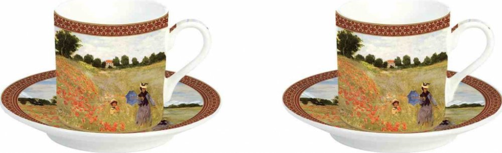 Porcelánové šálky a podšálky s motivem obrazu Coquelicots, La Promenade, Poppies francouzského impresionistického malíře Clauda Oscara Moneta jsou dokonalým dárkem.