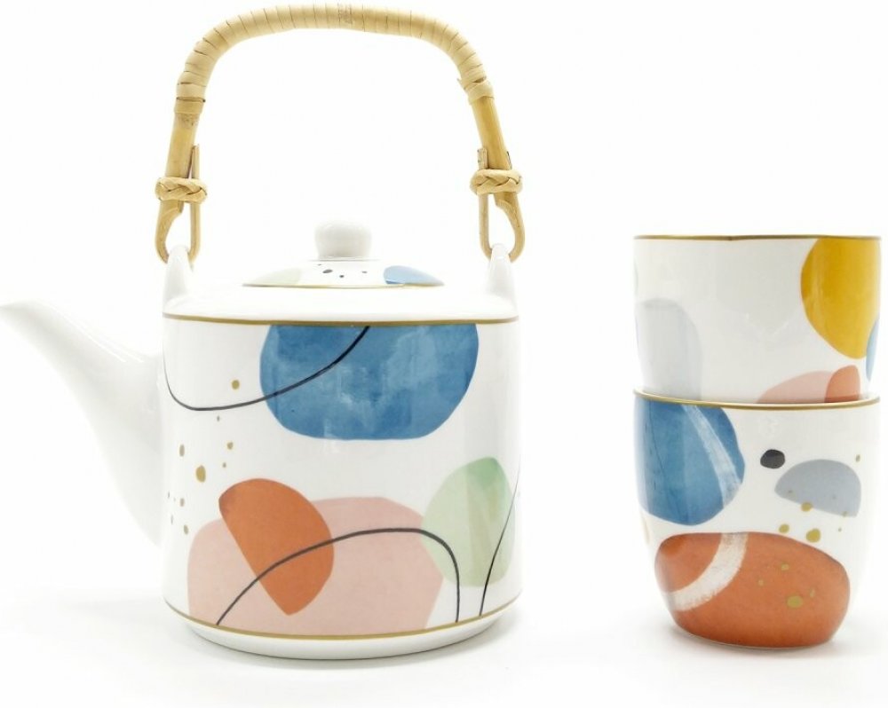Čajová souprava Shapes od Easy Life přináší moderní umělecký design s abstraktním vzorem inspirovaným surrealismem a Joana Miróem. Porcelánová konvice o objemu 0,6 l má praktické bambusové ucho, které nepopálí a snadno se sundává pro mytí. Součástí jsou dva porcelánové kelímky o objemu 0,16 l a husté nerezové sítko, ideální pro jemné sypané čaje. Celá sada je vyrobena z kvalitního porcelánu Fine C...