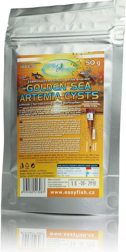 Návod k líhnutí: Do jednoho litru vody vsypeme vrchovatou lžíci soli (20–25g) a potřebné množství artemie. Silně vzduchujeme. Doba líhnutí při teplotě 24–26°C je 30–36 hodin. Pro maximální výtěžnost je možno po prvním odebrání vylíhlé artemie nechat násadu líhnout ještě 10-12 hodin a provézt druhý sběr vylíhlé artemie. Ideální nádoba na líhnutí má trychtýřový – kuželový tvar o výšce cca 30 cm se v...