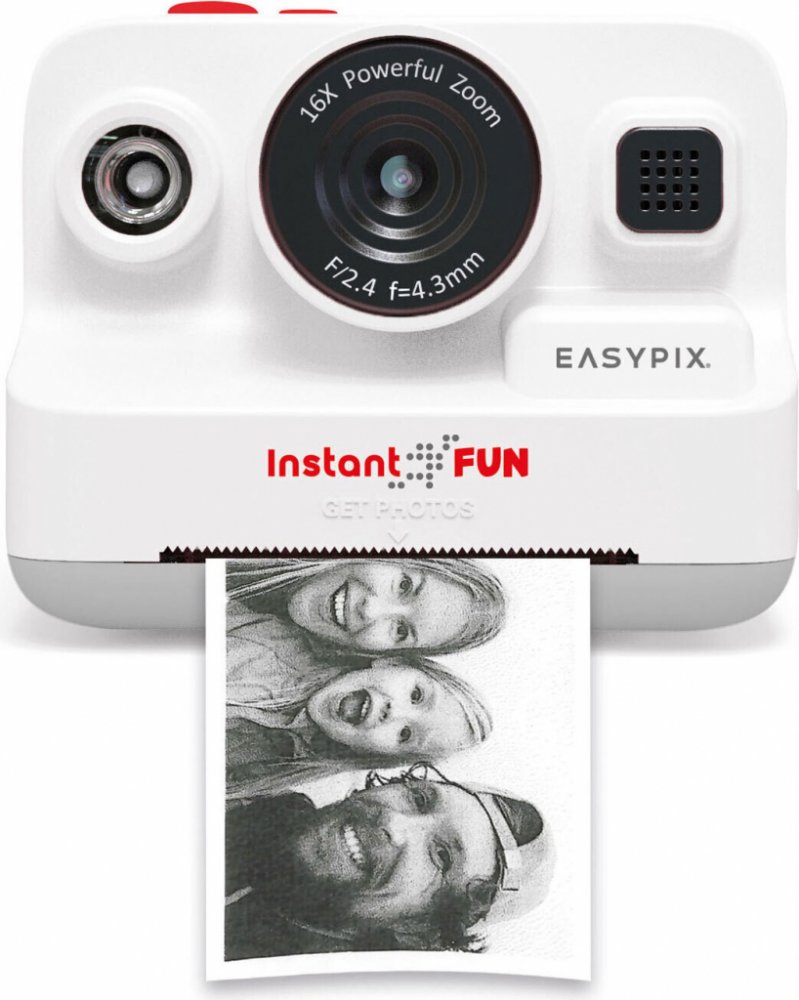 Easypix InstantFUN je vynikající instantní fotoaparát pro každého, kdo chce rychle a snadno vytvářet trvalé vzpomínky. Díky své funkčnosti, kompaktnímu designu a zajímavé škále funkcí je ideální volbou pro každou příležitost.