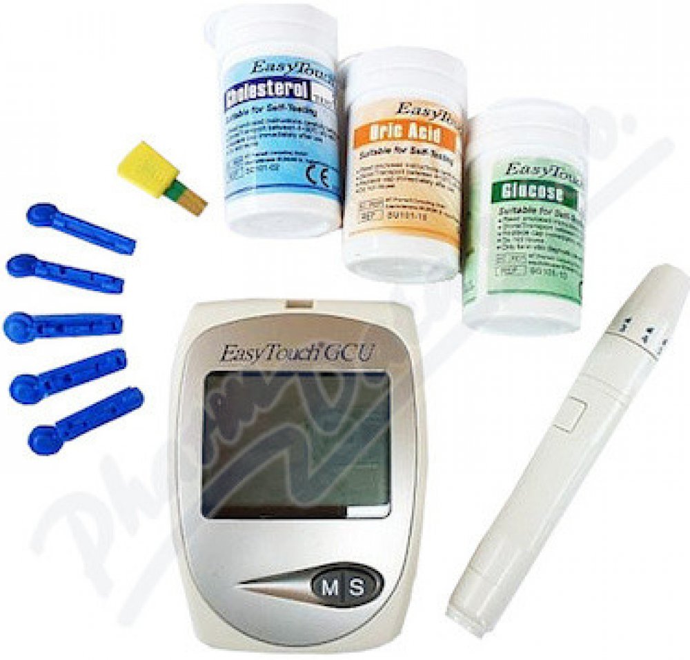 Cholesterolmetr Easy Touch je multifunkční set, spolehlivě změří hladinu cholesterolu, kyseliny močové a glukózy v krvi. Velký LCD displej, 200 pamětí na glukózu, 50 pamětí na cholesterol a kyselinu močovou. Automatické rozpoznání různých typů proužků.